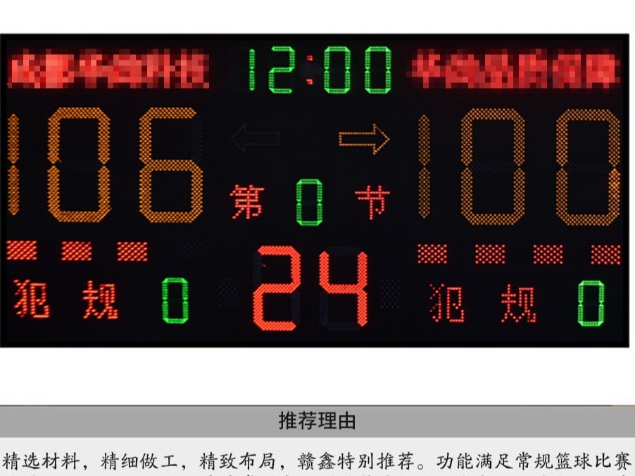 贛鑫中型多功能籃球電子記分牌,功能滿足常規籃球比賽,內置大功率喇叭,終場自動報警。咨詢電話18069884716